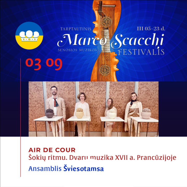 Ansamblis „Šviesotamsa“ Senosios muzikos M. Scacchi festivalyje pristato XVII a. Prancūzijos dvarų muzikos grožį, atskleisdami per elegantiškus baroko šokius ir air de cour žanrą. Nuo dainų su liutnios pritarimu, iki viola da gambos, klavesino ir dailių fleitos garsų – gyvai skambančios Prancūzijos monarchų Liudviko XIII-ojo ir Liudviko XIV-ojo laikų muzikos. „Air de cour programa siekiame atskleisti prancūziškos muzikos galantiškumą ir rafinuotumą, kviesdami klausytojus į poetišką kelionę per baroko epochą“.